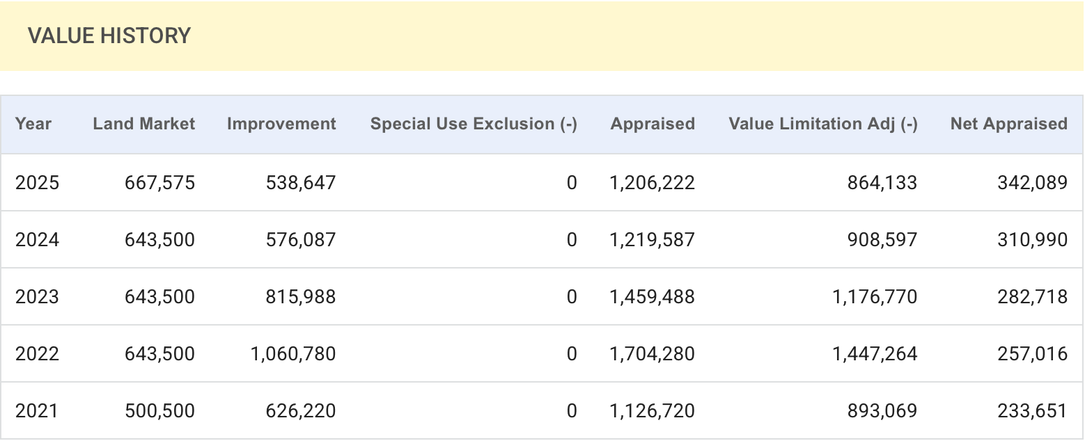An extreme example below is a property on the east side that has been owned by the same person since 1996. It was appraised this year at $1.2 million but the amount that is subject to tax is only $342k.