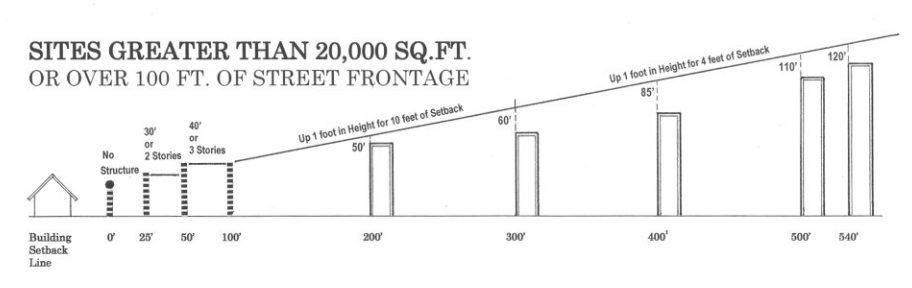 For the umpteenth time: Compatibility regulations restrict the height of buildings based on their distance from certain types of "triggering" properties. The triggering property is usually a single-family home, but it can be schools, churches, cemeteries. Unlike many other land use regs, compatibility cannot be be changed through a zoning case and it's nearly impossible to get a waiver.