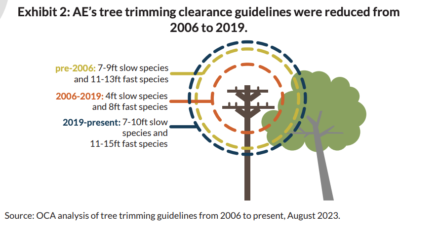 "AE is behind on its current goal to trim trees about the city’s power lines on a seven-year cycle because of several factors, including Council direction in 2006 to trim trees less than industry standards," said the report.