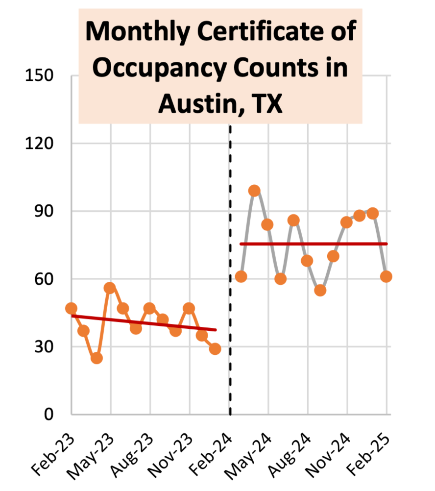 The American Enterprise Institute, a right-leaning think tank, has published its own mini-analysis of the HOME initiative. Unlike the city's own recently-released report, which focused on the number of building permits issued, AEI's report focuses on certificates of occupancy, which more closely reflects the number of new homes that actually built:
