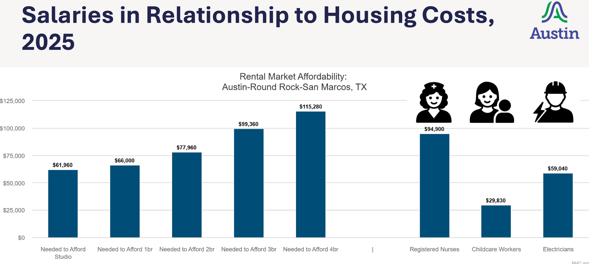 The first is this chart that purports to show the income you need to afford different types of housing in the Austin metro area: