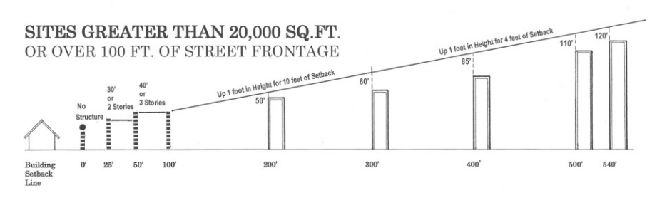 The intent seems pretty clear: to end compatibility at 50 feet. Currently, its reach can extend all the way up to 540 feet. Although Council recently relaxed the rules on certain corridors, the standard compatibility standards still prohibit a 60-ft building from being within 300 feet of a single-family property.