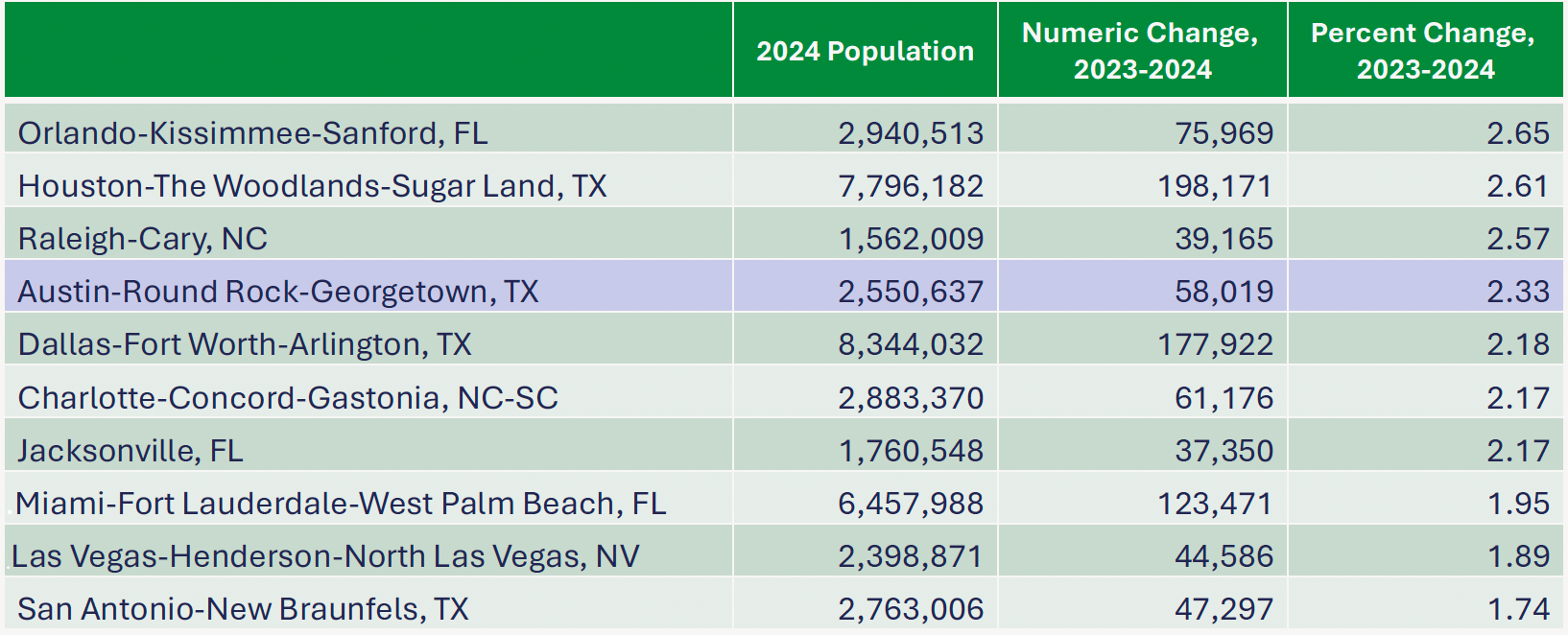 But keep in mind: the Austin MSA is still the fourth fastest growing metro area in the country.