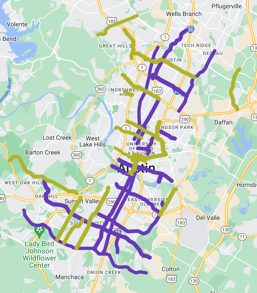 What's important to remember is that many of the city's major corridors are the jurisdiction of TxDOT, not the city of Austin. That's why the section of S. Lamar between Riverside & Barton Springs Rd will continue to senselessly have three car lanes in each direction (the rest of Lamar has two) –– because Greg Abbott won't let us have nice stuff.