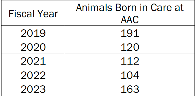 And this is the number of animals born at APA! after the mother was transferred from AAC:
