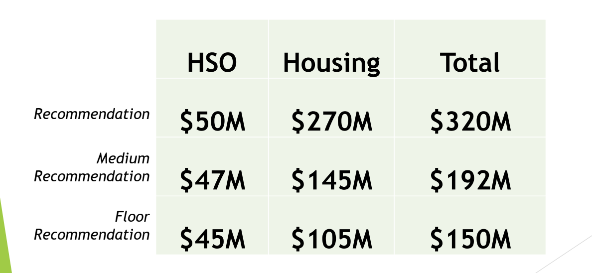 Meanwhile, the Affordable Housing Working Group of the 2026 Bond Election Advisory Task Force last week released its own recommendations. In a nod to the political pressure to keep costs low, it offered a "floor" recommendation and a "medium" recommendation in addition to its real one, which is higher.