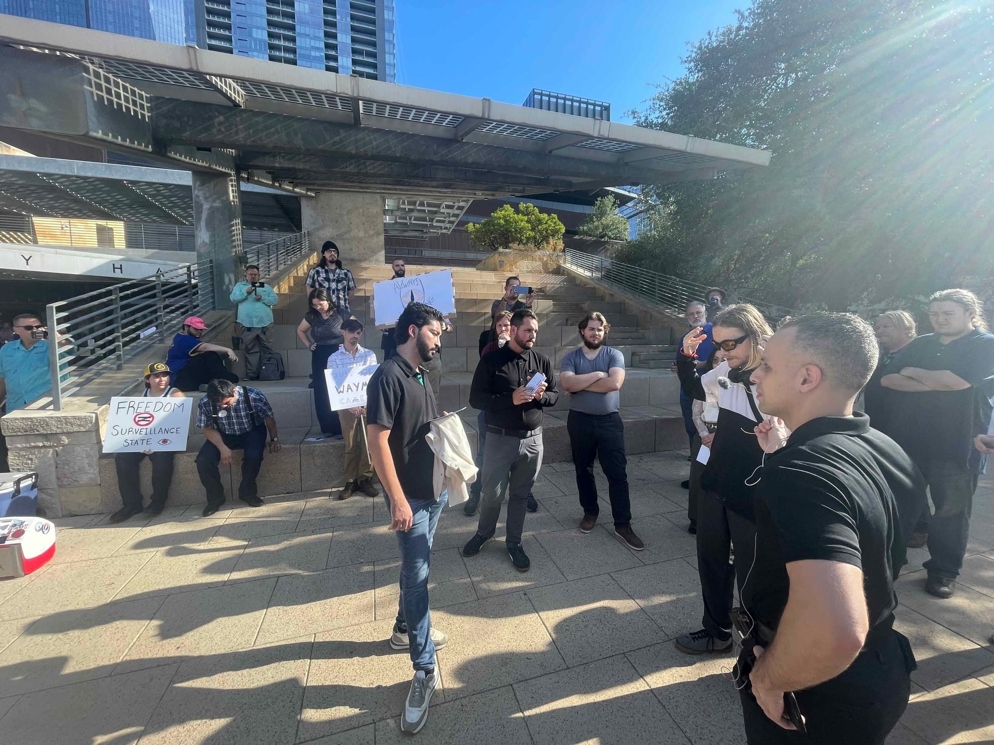 Usually two or three dozen people show up for a cause at City Hall, I recognize at least a few faces. But I didn't recognize any of those gathered in a crowd on the City Hall front steps Thursday, interrogating two representatives for LiveView Technologies, the company the city has proposed paying $400,000 a year to install and operate AI-powered security cameras in parks.