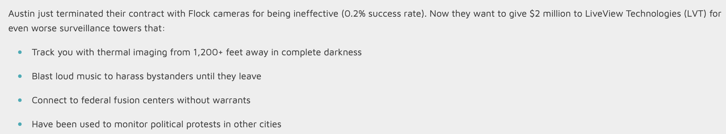 However, the flagrantly fascist direction of Trump II is making it very hard for liberal elected officials to support any kind of surveillance. Fear of enabling persecution of immigrants, dissidents or women seeking abortions similarly doomed APD's license plate reader program.