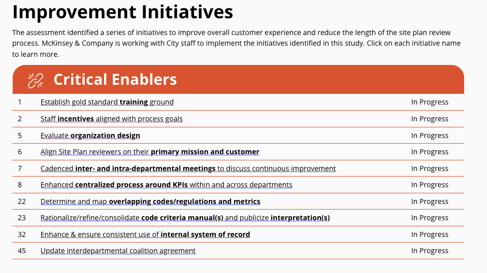 Huh. That's not what I'm hearing from people in the industry. And the "significant positive outcomes" just links to a list of initiatives recommended by McKinsey, all of which are "in progress." For instance: