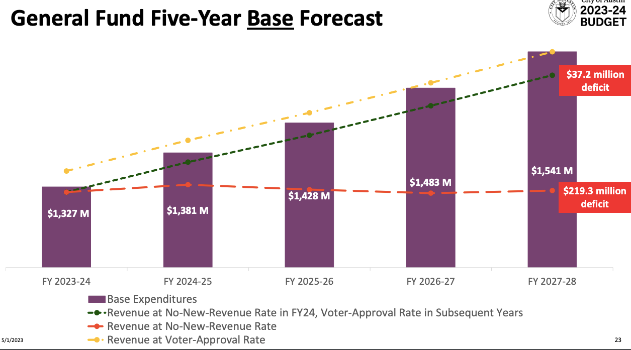 The big increase in sales tax revenue has pushed the inevitable budget deficit a couple years into the future. A budget forecast from two years ago had the city running into a $15.6M deficit by FY 2025-26 even if it consistently raised taxes by the 3.5% cap.
