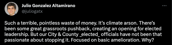 "If the city can’t even say in an official capacity what we all know to be true –– that I-35 should not be expanded –– then what hope is there?" asked Miriam Schoenfield, a UT professor. "And what message does it send to the next generation if we can’t even say it?"