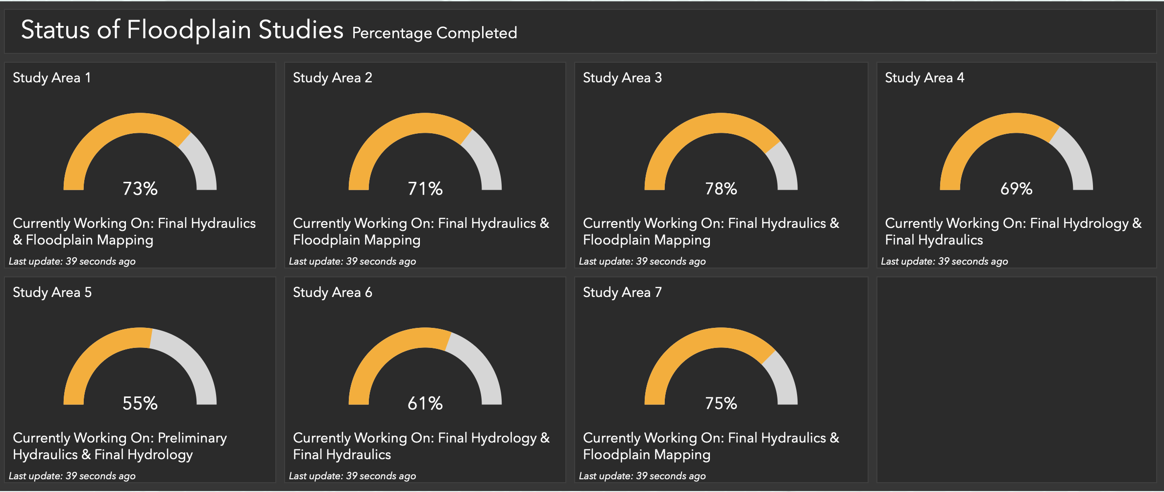 At this point, floodplain studies examining seven different areas of the city are between 55-78% complete, according to a public dashboard maintained by the Watershed Protection Department.
