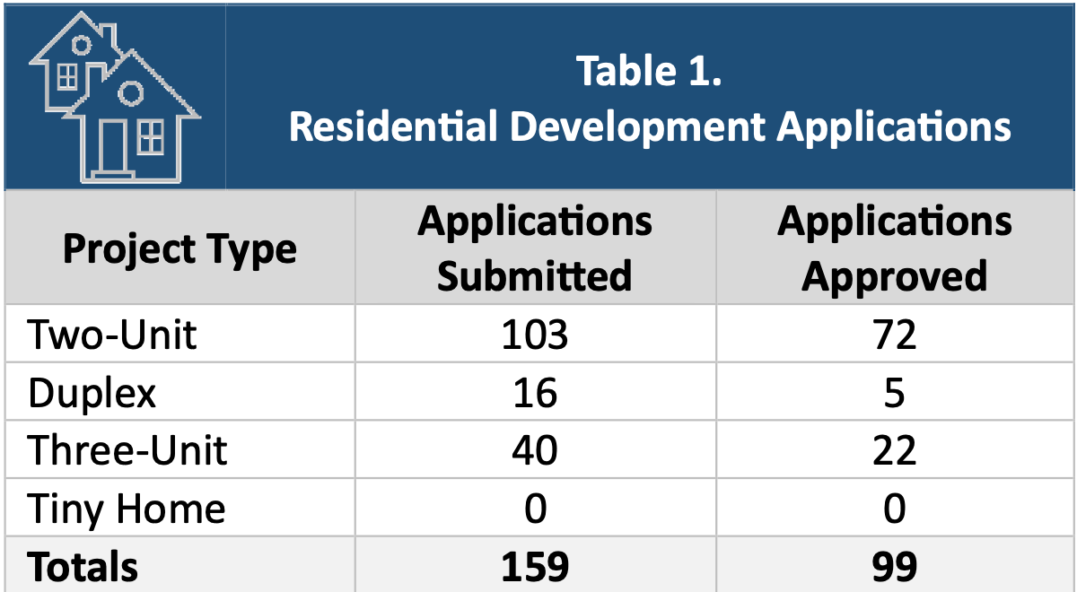 Last month the Development Services Department offered some insight on the effects of HOME, the land use reform approved by City Council in 2023 that allows up to three units on any single-family lot.